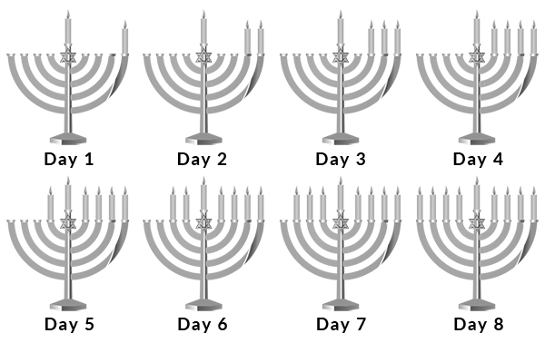 Quella del giorno della festa andrà sempre accesa per prima, quindi si posizionano da destra a sinistra e si accendono da sinistra a destra. Si da la priorità alla candela del giorno della festa ed inseguito alle altre in ordine decrescente (4 giorno, 3 giorno, 2 giorno…)