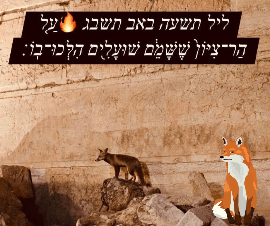 Una volta raggiunto il Monte del Tempio, videro una volpe che usciva dal Santo dei Santi. Gli altri cominciarono a piangere ; Rabbi Akiva rise.