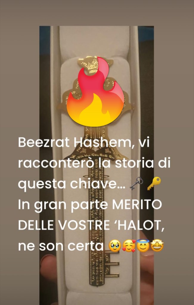 Ho ceduto un recipiente dorato e ricevuto una chiave d’oro puro 🔑 Una benedizione che non era inclusa, ma ricevuta avendo fiducia nella prima… Se tutto questo vi sembra vago, mi dispiace, sappiate giusto che son certa che LE VOSTRE HALOT A FORMA DI CHIAVE mi hanno permesso di riceverla e vi ringrazio dal profondo del cuore 🥹💗 Per le persone laiche o poco osservanti, questo non avrà molto valore, ma per chi “sente il Cielo” è tantissimo.