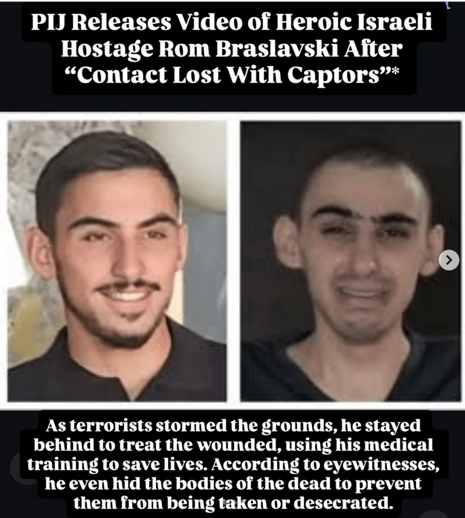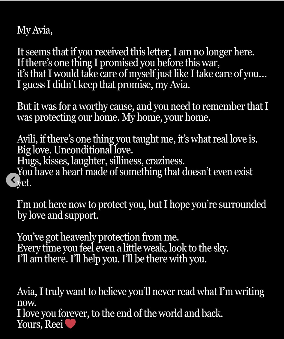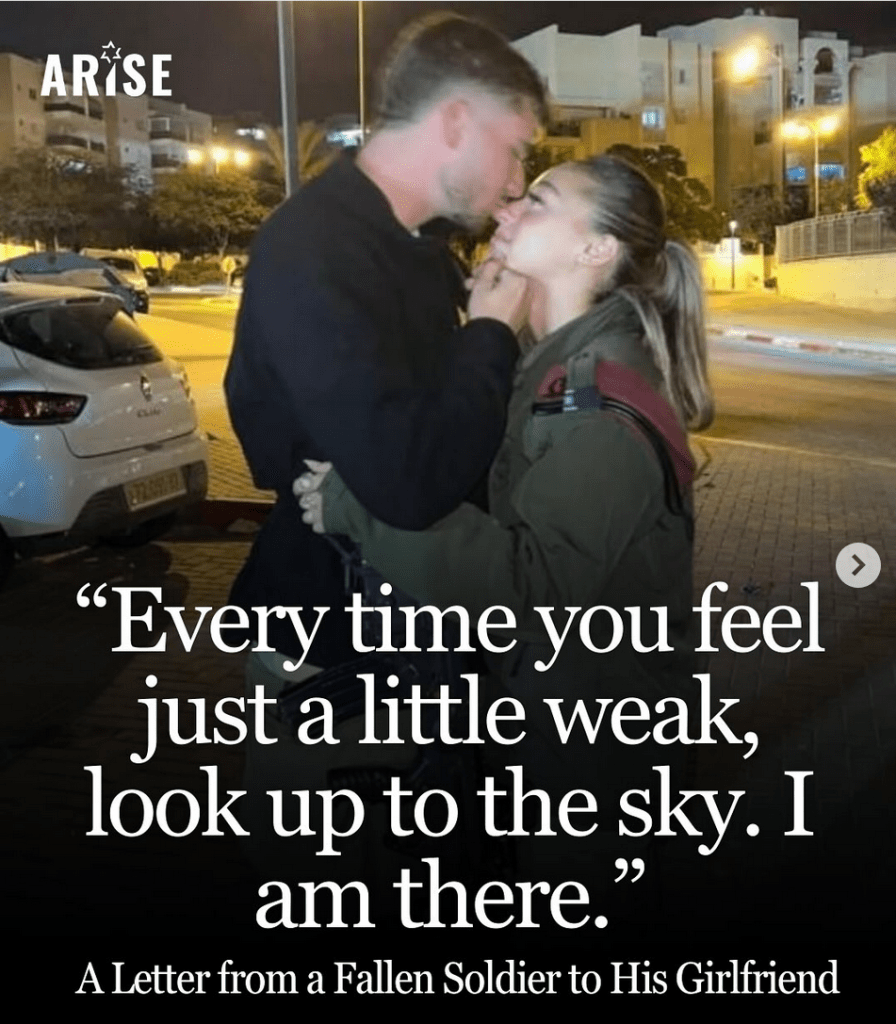 “Il cuore brucia : il soldato Daniel Adri z’’l si è tolto la vita. Dopo che due suoi amici sono stati assassinati alla festa Nova del 7 ottobre, e dopo aver combattuto per un anno e mezzo a Gaza ed in Libano… Daniel si è fatto dieci docce durante la notte per cercare di far sparire l’odore dei cadaveri. Tutti condividono in sua memoria.